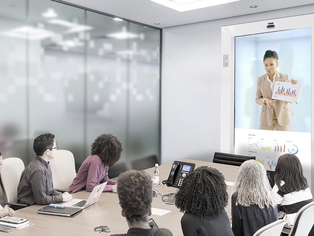 Proto M ist das ideale Gerät, um z.B. firmeninterne Workshops und Sessions nach aktuellem Stand der Technik aufzuwerten. Durch seine kompakte Größe ist das Modell ideal für kleinere Räumlichkeiten. Es entsteht eine Atmosphäre, in der jeder Teilnehmer das Gefühl hat, direkt neben dem Vortragenden zu sitzen. Auch hier ermöglicht die Interaktionsmöglichkeit einen intensiven Austausch und das direkte Einbringen von Fragen und Anmerkungen.